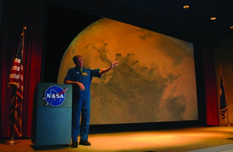 Upgrade of the existing popular Astronaut Encounter Theater to allow for fully digital presentations including a digital database of the Universe in presentations. Work included supply of a 7.5 meter wide screen, 4K 3D project ion system, audio system upgrades, and integration with theater safety systems